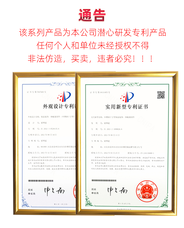 可调节卡扣:能适配5-500mm厚度的各类一体板,同时可微调板材平整度,轻松应对墙面微小误差,表面做了防腐蚀氧化处理,搭配不锈钢螺丝,加强型设计,户外环境下耐用性可达20年以上,完美匹配工程质保需求。