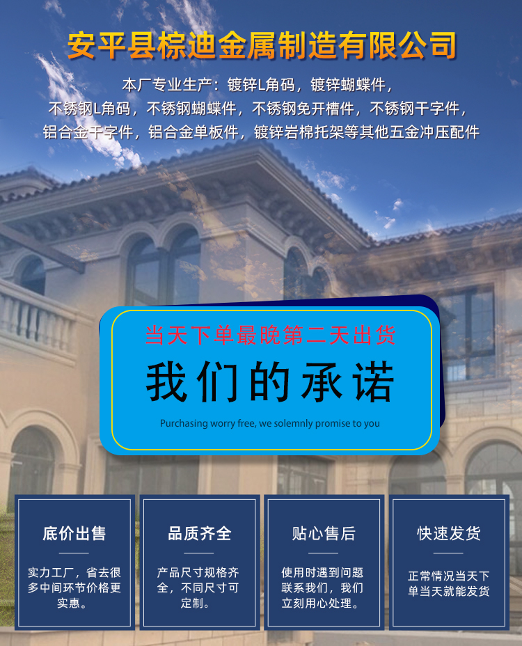 挂件应用:采用不锈钢铝合金组合挂件,由不锈钢挂件、铝合金内嵌件等组成。铝合金件内有预置螺母,通过螺栓与不锈钢件连接,不锈钢外挂件有调节孔,可上下或前后调节复合板位置。安装时,先在石材背面开槽嵌入铝合金件,再复合保温材料,通过粘挂结合的方式固定在墙体上。