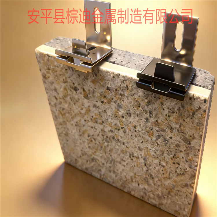 在工艺细节上,棕迪金属更是精益求精。挂件表面经过专业的抛光、防锈处理,不仅提升了外观的光洁度,更增强了在潮湿、酸碱等复杂环境下的抗腐蚀能力,大幅延长了产品的使用寿命。从长款的承重型挂件到短款的定位型挂件,棕迪金属针对不同幕墙安装场景设计了丰富的产品规格,能够适配各类一体板的安装需求,为施工方提供灵活的解决方案。