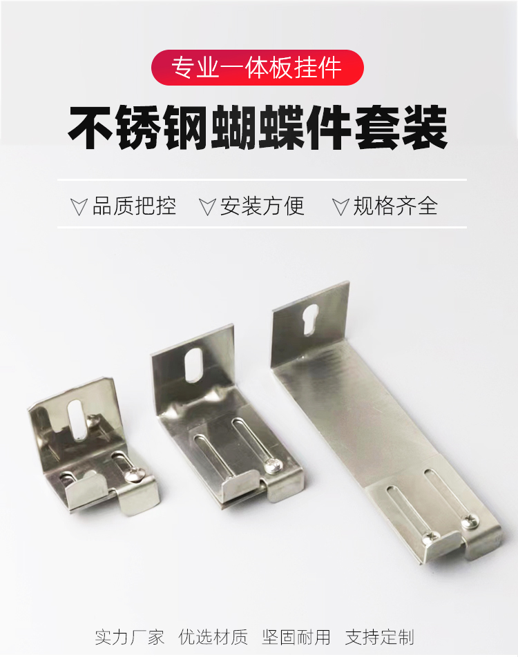 蝴蝶一体板挂件安装核心是先固定挂件底座,再卡入一体板挂件,需确保基层平整且挂件间距符合规范。